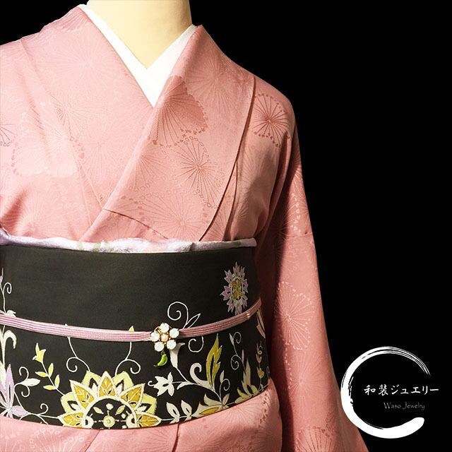 ウグイスのチャームが、動くたびに揺れてカワイイ帯留めです。